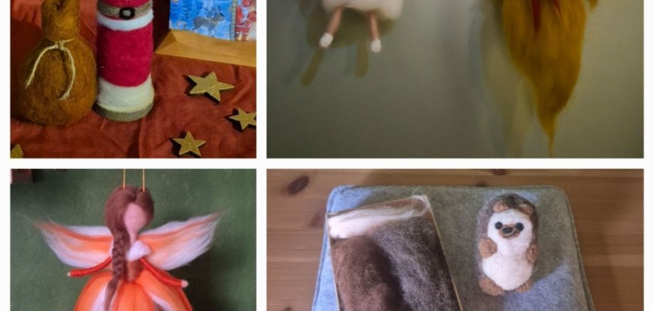 Das Filzen von Figuren aus Wolle steht im vhs Kurs Ro 252020911 am 17. und 24. November an. Wer bereits die Grundlagen des Filzens kennt, ist in diesem Kurs gut aufgehoben. Passend zur Vorweihnachtszeit stehen die Gestaltung eines freistehenden Weihnachtsmannes und eines hängenden Engels an. Der Kurs eignet sich für Teilnehmende, die bereits erste Filzerfahrungen gesammelt haben und ihre Kenntnisse vertiefen möchten. Gefilzt wird von 9 bis 11:15 Uhr im Christian-Zang-Haus, Schillerstraße 2, Die anfallenden Materialkosten von 5 Euro sind direkt bei der Dozentin zu entrichten. Die Kursgebühren sind auf der Homepage oder im Programmheft der vhs einzusehen. Interessierte können sich online anmelden unter www.vhs-rodgau.de oder schicken eine schriftliche Anmeldung an die vhs Rodgau, Hintergasse 15. Weitere Informationen erteilen die Mitarbeiterinnen der Volkshochschule unter den Telefonnummern 06106/693-1225 oder -1231.